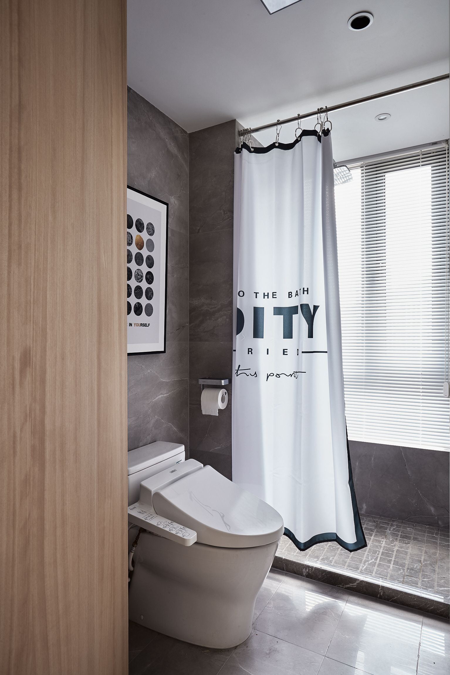 - 淋浴区狭小,用浴帘取代了淋浴房,避免空间出现挤压局促。